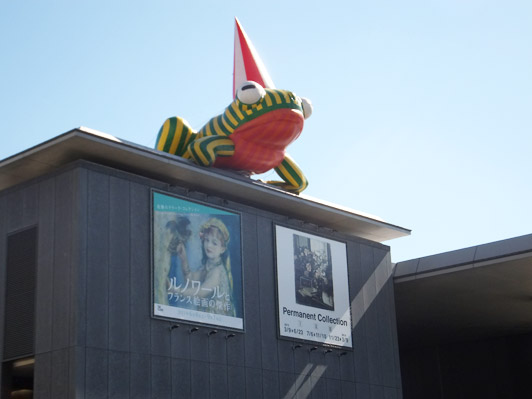 出迎えてくれるのは県美のシンボル「美かえる」くん。