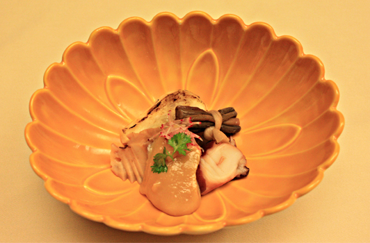 【八 寸】 鯛菊花すし 蟹、むかご袱紗(ふくさ)焼き 他