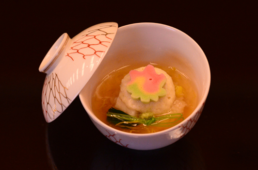 【煮物椀】 名残り鱧葛打ち 丸抜き玉子 冬子椎茸 他