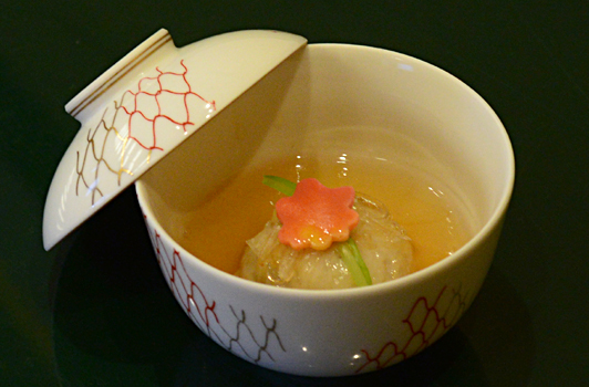 【蓋 物】 海老芋おかき饅頭 鶏そぼろ 鱶(ふか)ひれ銀あん掛け 他