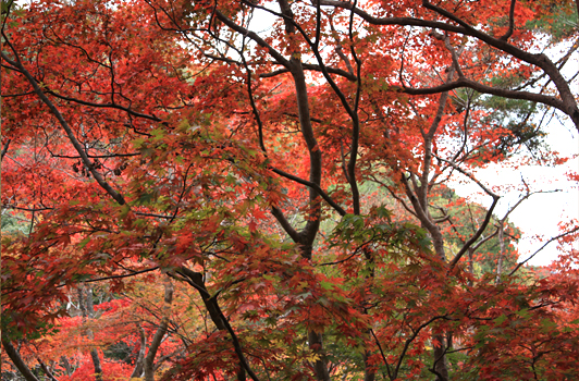 こちらのページでは、鴻朧館のロビーから御覧いただける見事な「落葉山」の紅葉を