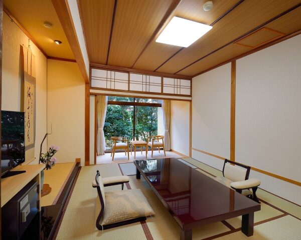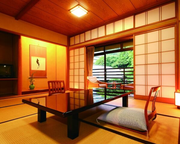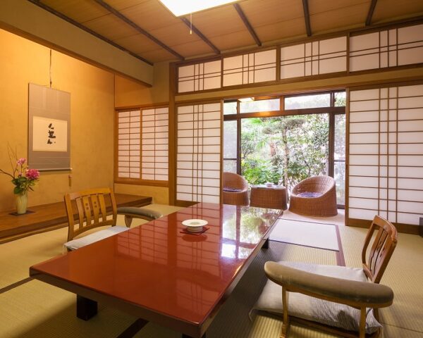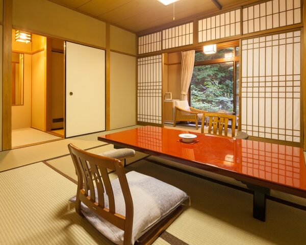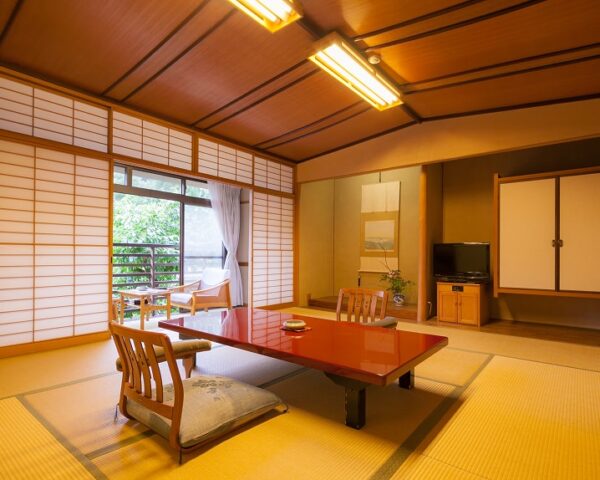 游月山荘のお部屋は、どこか懐かしい昭和の香りが漂います。七十年という歳月を経た游月山荘ならではの趣を感じていただけることでしょう。純和風の木の温もりに、寛ぎのひと時をお楽しみくださいませ。